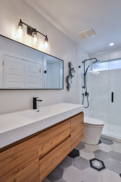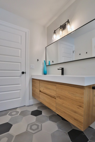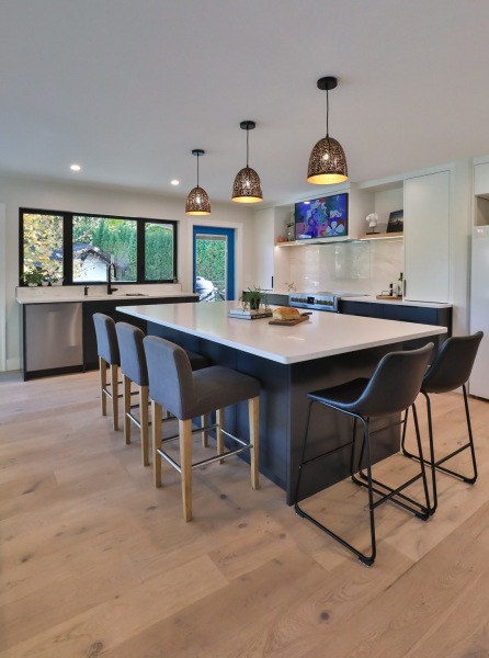 We always say our greatest compliment is a referral, what might be better is working with a repeat client! After selling their home and moving to a new property, we got the call and were excited to work with her again. Although the new home was in a great location, the kitchen was small, outdated and the layout not particularly functional. Adding a bump out solved all of these issues and created a larger custom kitchen,updated living space with fireplace, updated bathrooms, covered deck with additional space for storage and a in-home hair salon down below.